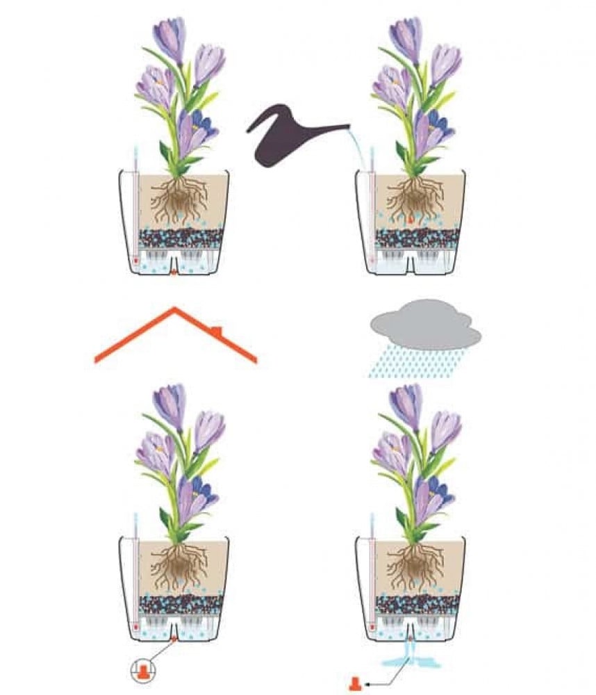 حوض زراعي ذاتي الري للنباتات الداخلية و الخارجية تسقي النبات بشكل ثابت وحسب الحاجة للماء، فقط قم بتعبئة خزان حوض بالماء ليتكفل بري النبتة حتى انتهاء الكمية الموجودة في حوض من دون سقي النبتة من اعلى، يحتوي على مؤشر يعرض كمية الماء الموجودة في الحوض لتقوم بتعبئة المركن بالماء عند وصول المؤشر للاسفل.
