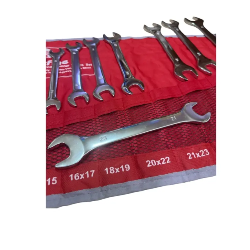 تحتوي المجموعة على مقاسات مفتاح 6،7،8،9،10،11،12،13،14،15،16،17،18،19،20،21،22،23،24،25،27،28،30،32 ملم مفتاح مصنوعة بدقة من خليط معدني من الكروم والفاناديوم مع سطح مصقول جيدًا، تضمن أبعاد كل من الاطراف مفتوحه