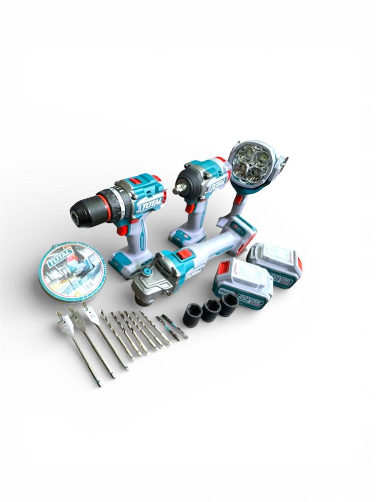 طقم توتال 4 في واحد دريل تخريم دريل فك صواميل صاروخ قص الحديد كشاف